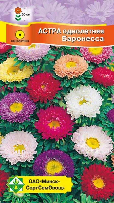 Новая оригинальная группа астр. Смесь сортов. Среднераннего срока цветения. Куст прочный, высотой около 60 см. Соцветия плоско-округлые, полумахровые, с желтой серединой, в диаметре 6-7 см. Используется для среза и клумб. Посев на рассаду производят с конца марта до середины апреля. В открытый грунт рассаду высаживают в мае на солнечное место. При посадке свежего навоза не вносить!