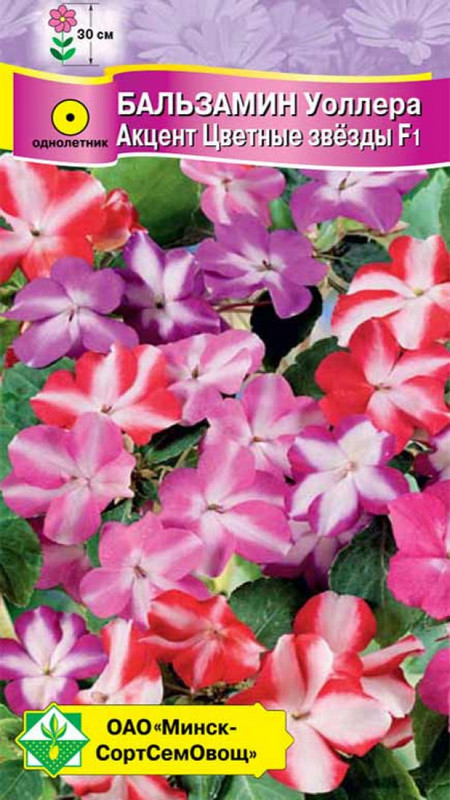 Привлекательное, обильно и продолжительно цветущее однолетнее растение высотой 25-30 см. Цветки в диаметре 3-4 см, красных, розовых и фиолетовых тонов с оригинальным рисунком в виде белой звезды на лепестках. Прекрасно смотрится в подвесных кашпо, цветочных ящиках и горшках, на клумбах. Посев на рассаду производят в середине марта-начале апреля. Семена чуть присыпают, накрывают стеклом или пленкой и ставят в светлое, теплое место. Рассаду в открытый грунт высаживают с середины мая.