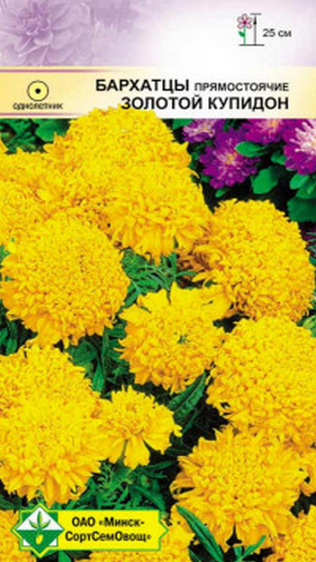 Эффектное однолетнее растение высотой около 20 см. Соцветия крупные, в диаметре 8-10 см, махровые, золотисто-желтой окраски. Цветут обильно с июля до октября. Прекрасны для оформления клумб, бордюров, рабаток, балконов. Семена высевают на рассаду в конце марта - апреле или прямо в открытый грунт в мае. Рассаду высаживают в грунт в мае, когда минует угроза заморозков. Размещают на солнечном месте или в полутени.