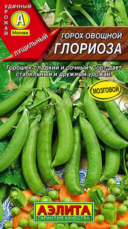 Высокоурожайный, дружно созревающий, среднеспелый, лущильный горох. Относится к мозговым сортам, которые дают самый сладкий горошек высшего качества. Стебель длиной 60-70 см. От всходов до потребительской спелости около 55 дней. Бобы содержат до 9 зерен. В биологической спелости семена морщинистые. Сорт рекомендован для свежего потребления, кулинарной переработки и консервирования. Урожайность зеленого горошка около 0,5-0,6 кг/м2.