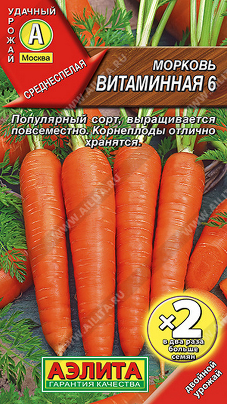 Популярный, отечественный сорт. Хорошо адаптируется в различных зонах земледелия. Районирован повсеместно. Среднеспелый, формирует урожай за 100-120 дней от всходов. Корнеплод сорто типа Нантская, длиной 15-20 см, массой 100-165 г, с высоким содержанием каротина. Вкусовые качества отличные. Лежкость корнеплодов хорошая. Рекомендуется для свежего потребления, переработки и длительного зимнего хранения. Урожайность 6-8 кг/м2.