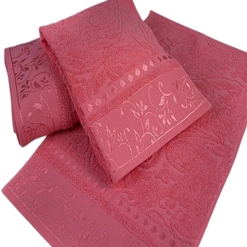 Набор из 3-х махровых полотенец "П37. Жаккард брусничный" в упаковке, 100% хлопок, Россия. - купить по выгодной цене | НатДивТорг