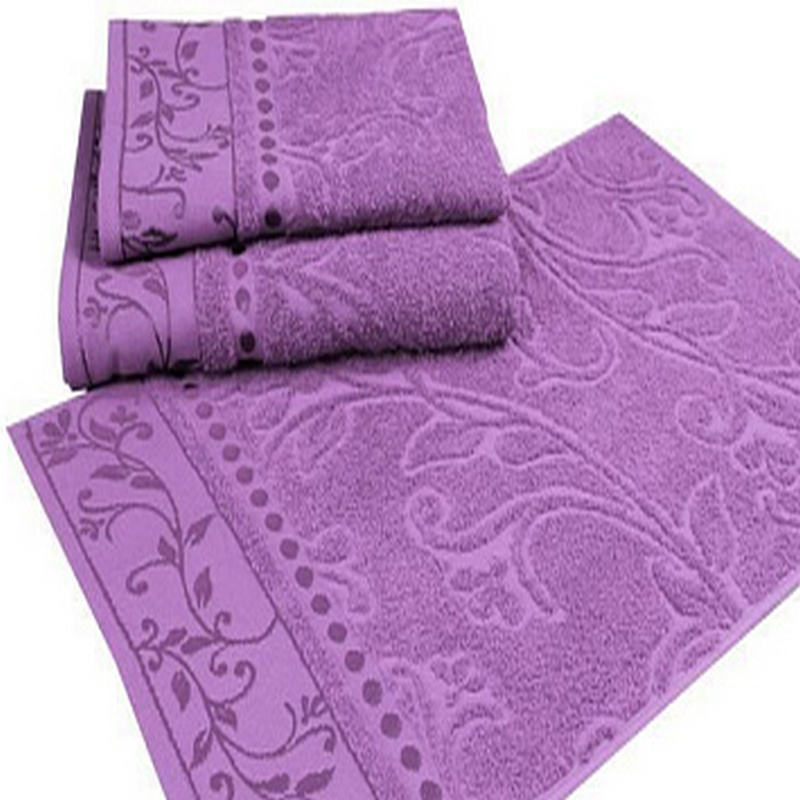 Набор из 3-х махровых полотенец "П37. Жаккард сирень" в упаковке, 100% хлопок, Россия. - купить по выгодной цене | НатДивТорг
