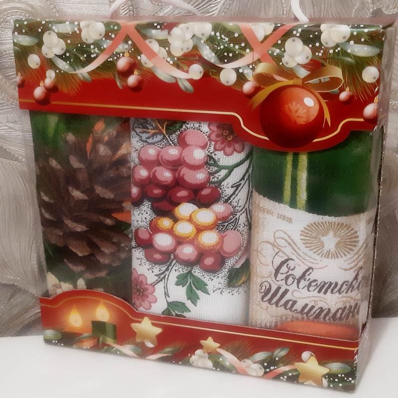 Набор из 3-х вафельных полотенец размером 40*60см. 100% хлопок. Подарочная упаковка с ручкой-шнурок.