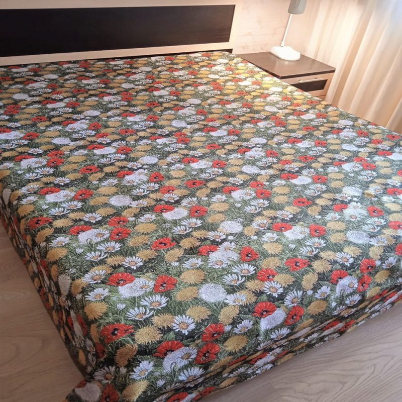 Благодаря высокому качеству гобелена покрывало устойчиво к вытиранию и образованию зацепок, не деформируется и не садится после стирки. Рисунок, отличающийся насыщенностью и стойкостью красок, со временем не потускнеет и будет радовать вас на протяжении долгих лет.