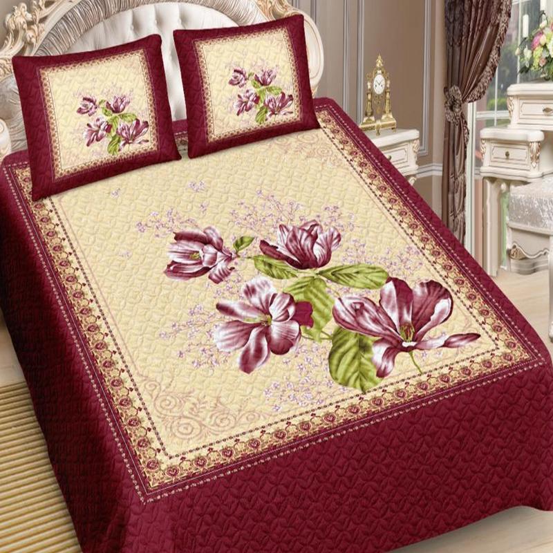Покрывало шелковое с двумя наволочками 50*70 см. Покрывала  изготовлены с помощью технологии безниточной стежки - ультрастеп: соединение ткани и наполнителя при помощи ультразвука. Мы используем искусственный шелк (дизайны панно), синтепон 80 г/кв.м и полиэстер разных дизайнов, в качестве подкладки.