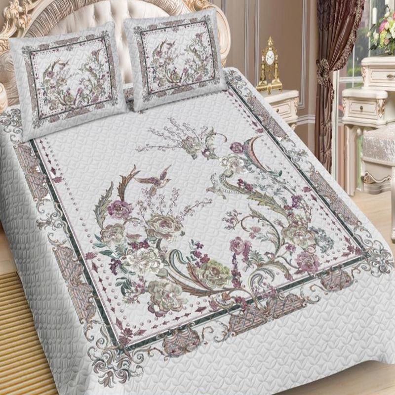 Покрывало шелковое с двумя наволочками 50*70 см. Покрывала  изготовлены с помощью технологии безниточной стежки - ультрастеп: соединение ткани и наполнителя при помощи ультразвука. Мы используем искусственный шелк (дизайны панно), синтепон 80 г/кв.м и полиэстер разных дизайнов, в качестве подкладки.