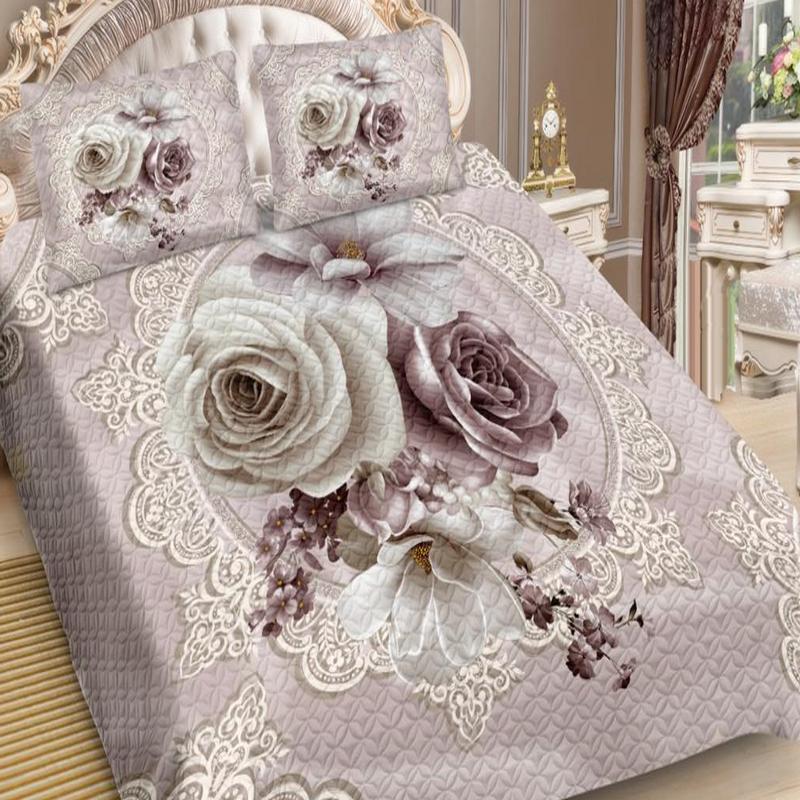 Покрывало шелковое с двумя наволочками 50*70 см. Покрывала  изготовлены с помощью технологии безниточной стежки - ультрастеп: соединение ткани и наполнителя при помощи ультразвука. Мы используем искусственный шелк (дизайны панно), синтепон 80 г/кв.м и полиэстер разных дизайнов, в качестве подкладки.