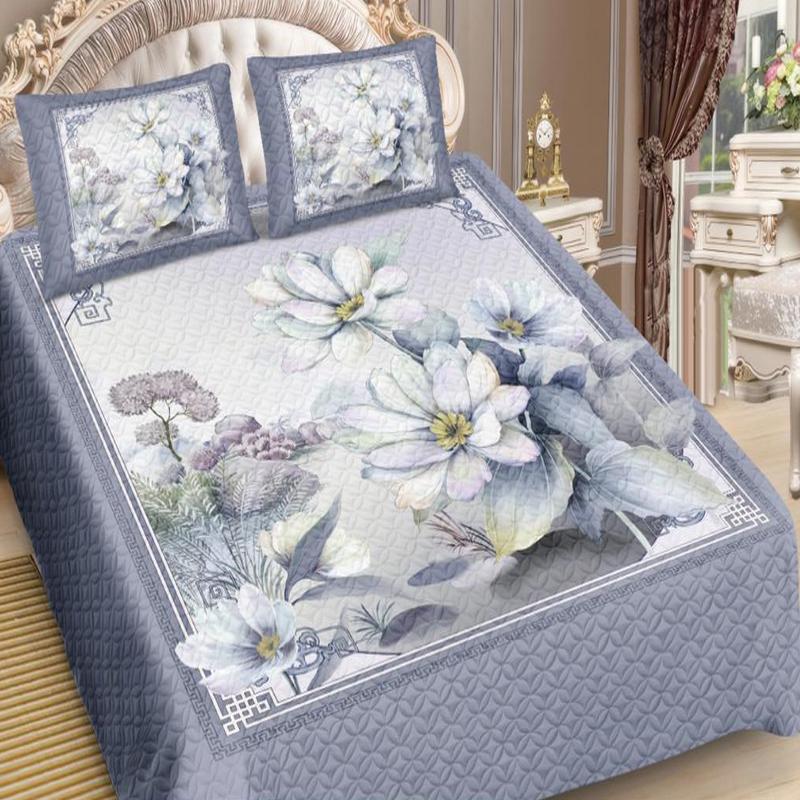 Покрывало шелковое с двумя наволочками 50*70 см. Покрывала  изготовлены с помощью технологии безниточной стежки - ультрастеп: соединение ткани и наполнителя при помощи ультразвука. Мы используем искусственный шелк (дизайны панно), синтепон 80 г/кв.м и полиэстер разных дизайнов, в качестве подкладки.