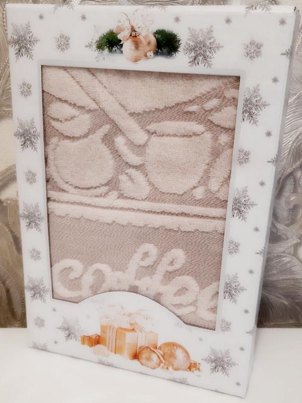 Полотенце кухонное махра-хлопок "COFFEE-2" в подарочной упаковке, 100% хлопок, Китай.