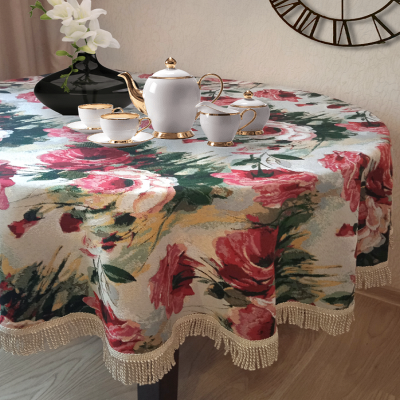 Скатерть гобеленовая круглая "D. АКВАРЕЛЬНЫЕ РОЗЫ", Россия.