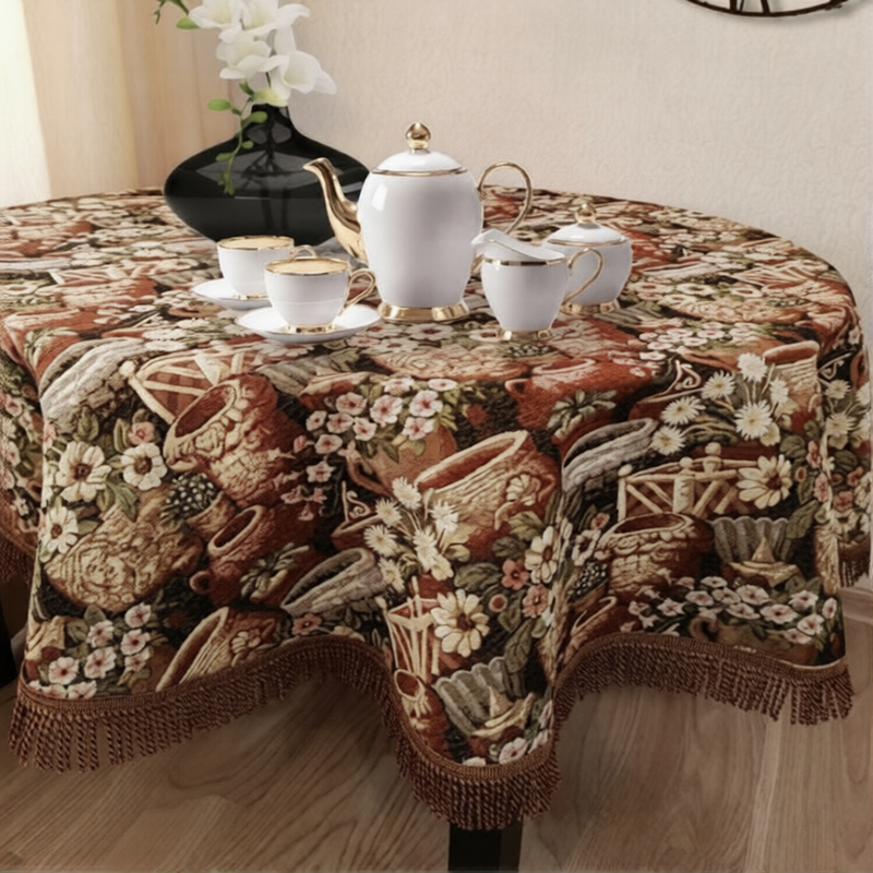 Скатерть гобеленовая круглая "D. ГОРШЕЧНАЯ ЛАВКА", 40% хлопок, Россия.
