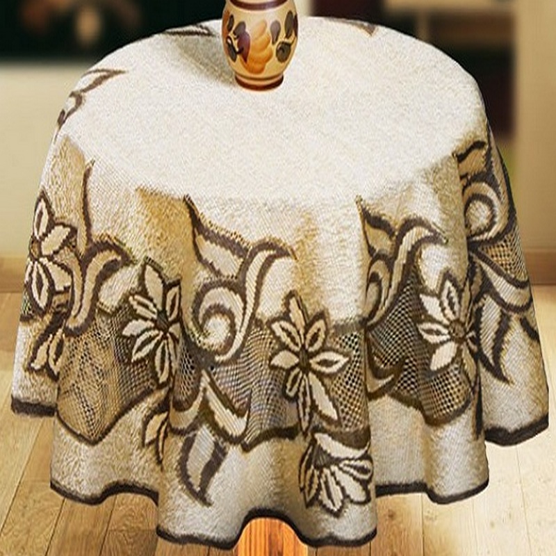 Скатерть жаккардовая круглая, цвет песочно-кофейный, Польша. - купить по выгодной цене | НатДивТорг