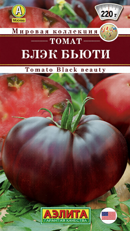 Достойная новинка томата с мировым именем. Сорт «Black beauty» создан американцем Бредом Гейтсом. Отлично подходит для теплиц, индетерминантные кусты достигают высоты 2-х (и более) метров и позволяют получить свыше 15-16 кг/ м 2 ароматных, сладких плодов. Первый урожай созревает через 112-115 дней после всходов. В период налива помидоров их оттенок меняется от темно-фиолетового с зелеными вкраплениями до черно-красного в потребительской спелости. Средняя масса плодов* 180-220 г, вес максимально крупных – до 500 г. Эффектная окраска и великолепный вкус продукции не оставят равнодушным ни одного гурмана.