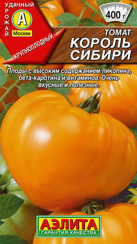 Крупноплодный среднеспелый сорт для открытого грунта в южных регионах и пленочных укрытий в средней полосе. От всходов до плодоношения 110-115 дней. Растения индетерминантные, в теплице высотой около 180 см. Плоды* многокамерные, мясистые, плотные, массой 300-400 г. Содержание бета-каротина повышенное. Вкус превосходный. Идеально подходит для детского и диетического питания. Урожайность 10-12 кг/м2.