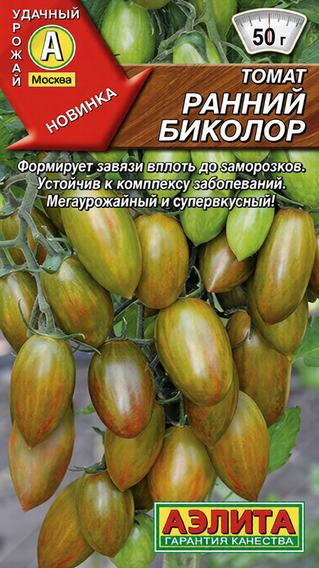 Скороспелый мегаурожайный сорт с неповторимой окраской плодов – каждый уникален! В процессе созревания полосатые зеленые томаты приобретают желтый, оранжевый и краснокоричневый румянец. Чем спелее плоды, тем интенсивнее окраска. Рекомендуется не запаздывать с уборкой зрелых томатов. Растения индетерминантные, в з/г вырастают до 2 м. Период от всходов до сбора первого урожая 105-110 дней. Плоды* массой 35-50 г, с симпатичными носиками, собраны в красивые объемные кисти. Томаты очень сладкие, сочные, с легким фруктовым привкусом. Мякоть и кожица – нежные. В теплице завязи формируются вплоть до начала ночных заморозков.