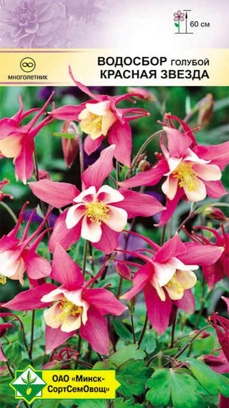 Аквилегия или водосбор - изумительный декоративный многолетник! Изящное многолетнее растение высотой около 60 см. Сорт с ажурными серо-зелеными листьями и привлекательно окрашенными цветками. Цветки оригинальной колокольчатой формы, в диаметре 5-7 см. Для посадок среди деревьев и газонов, срезки. Выращивают посевом семян непосредственно в грунт в конце апреля - мае или делением куста (весной и осенью). Предпочитает полутенистое место. Зимует без укрытия.