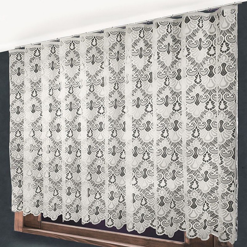 Тюль жаккардовый со сложным ажурным плетением в готическом стиле. Цвет - теплый, сливочно-кремовый. Ткани, произведенные известнейшей и старейшей фабрикой HAFT s. a. (Польша), славятся своими высокими потребительскими качествами. Даже по истечении многих лет они выглядят "как новые". 100 % полиэстер. Светонепроницаемость - 12 %. Пошив изделий из тюли - ФИРАНКА.