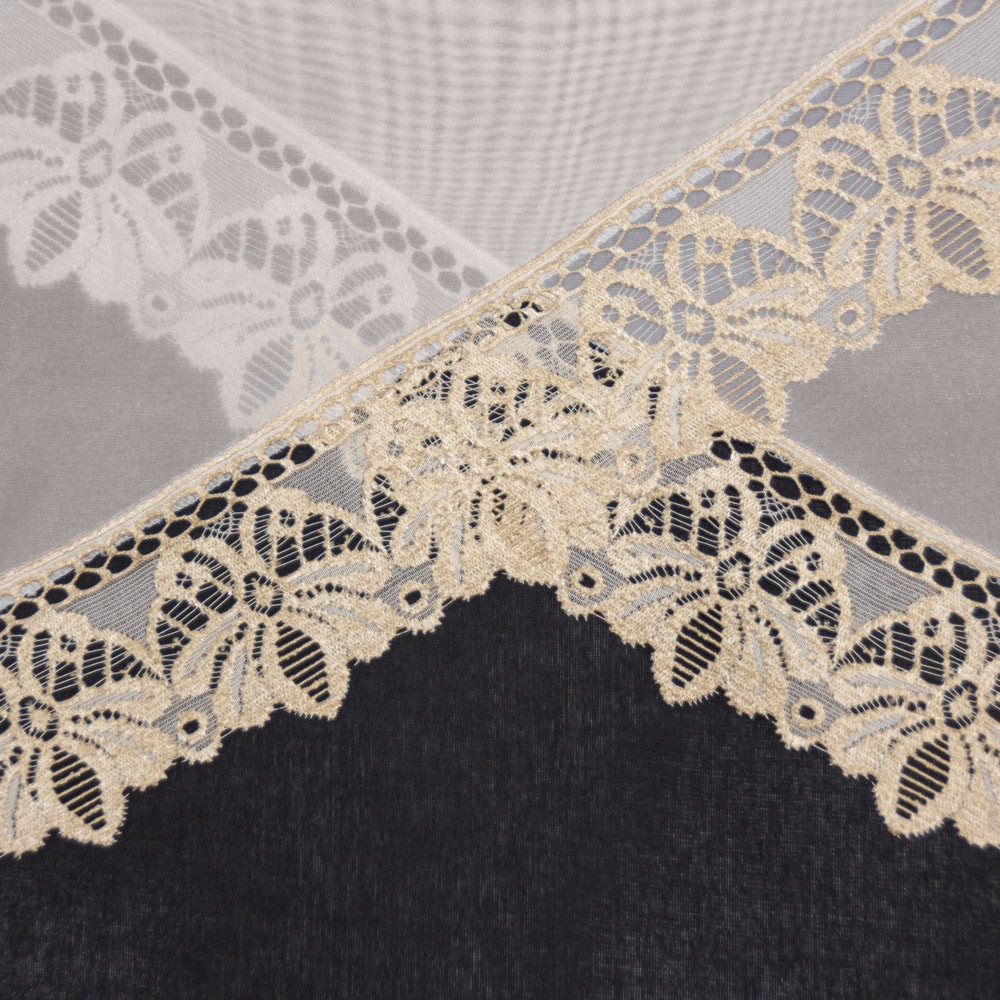 Благородная занавеска из мягкой вуали средней плотности, украшенная кружевом цвета старого золота. Ширина кружева - 8 см. Вес 0,5 кг. Размер в упаковке (45*50*3) см. Светонепроницаемость - 10-12%. 100 % полиэстер Производство FIRANKA.